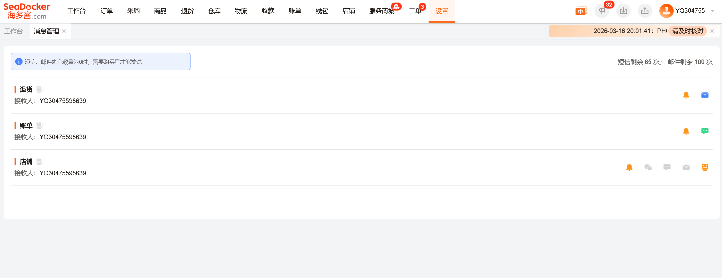 1)3种方式:海多客卖家工作台-站内信弹窗、海多客卖家工作台-系统消息、手机短信