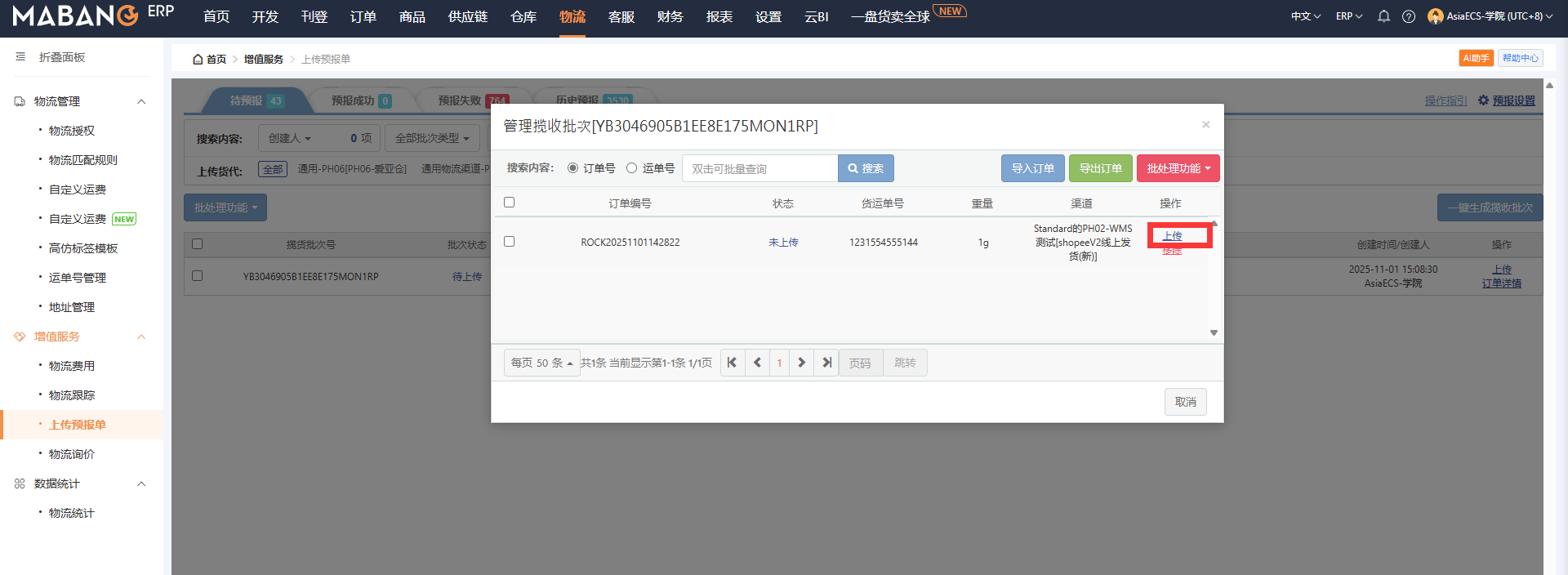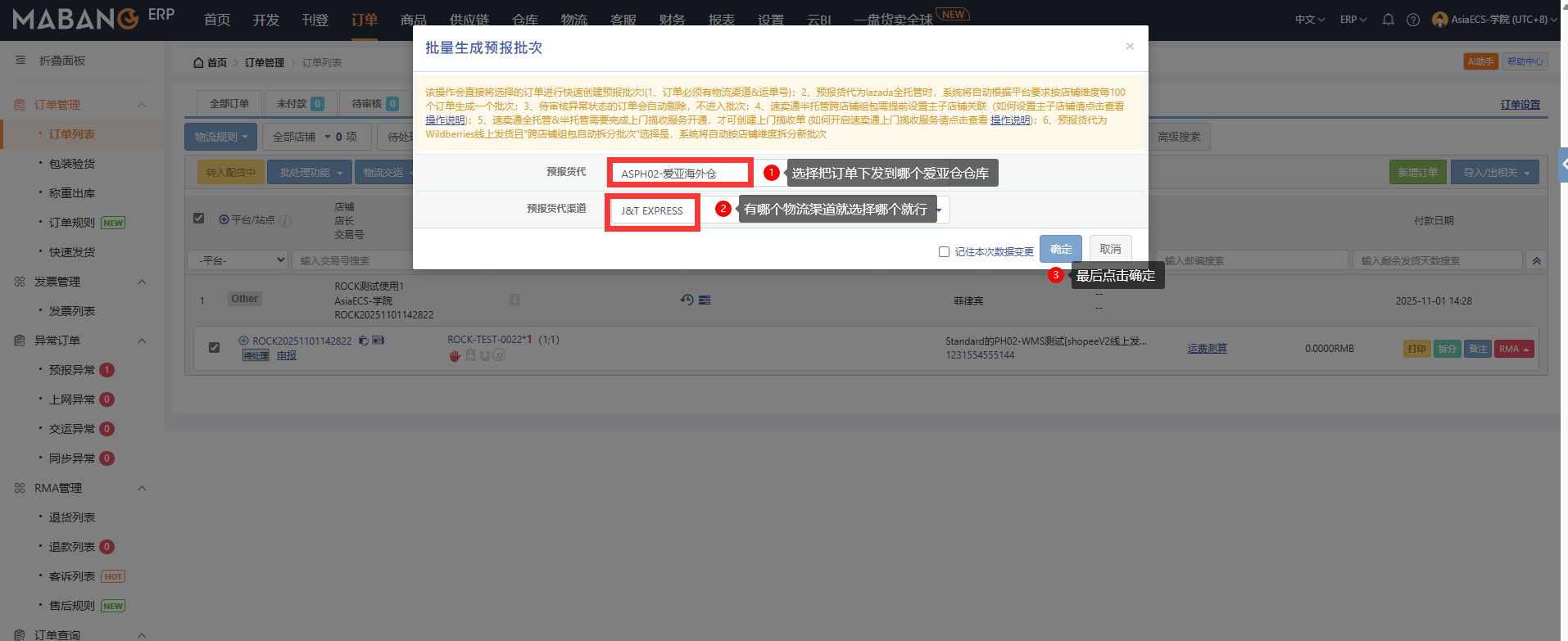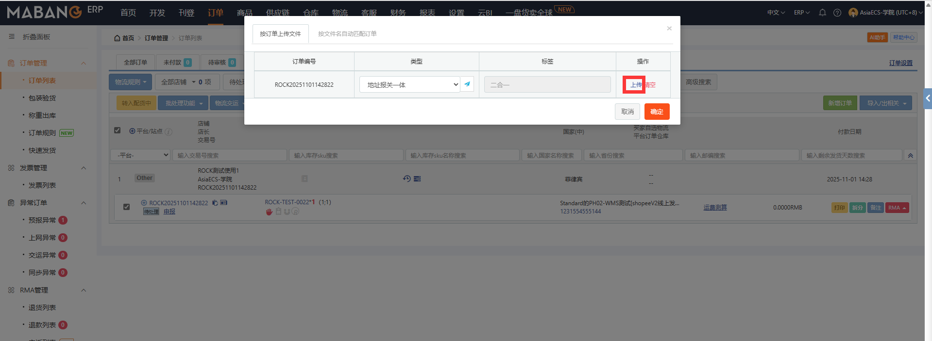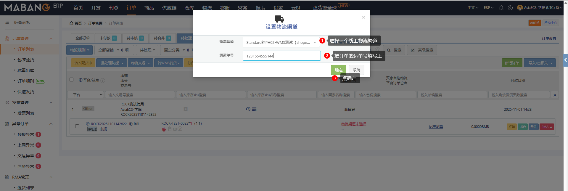 马帮EPP创建手工单下发爱亚仓WMS流程(客户自有面单)