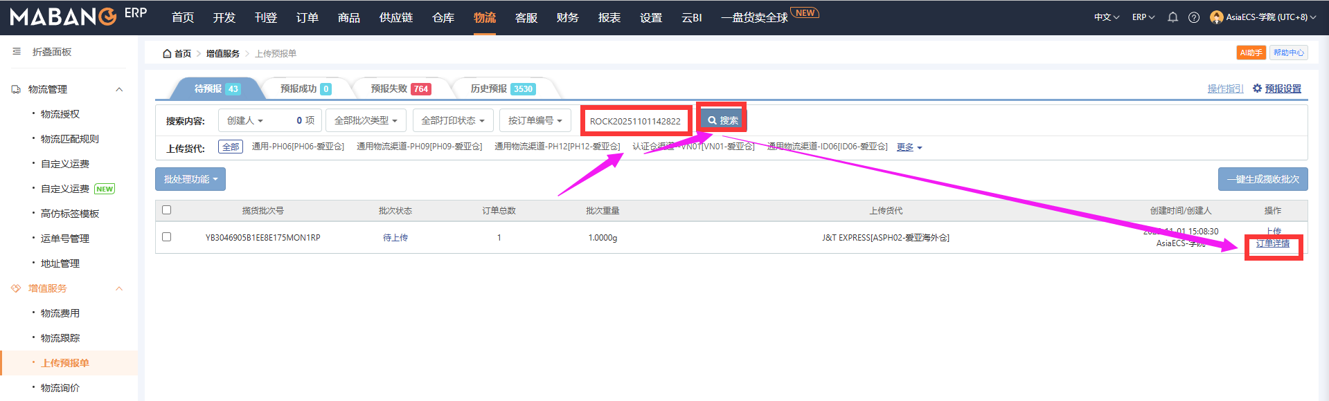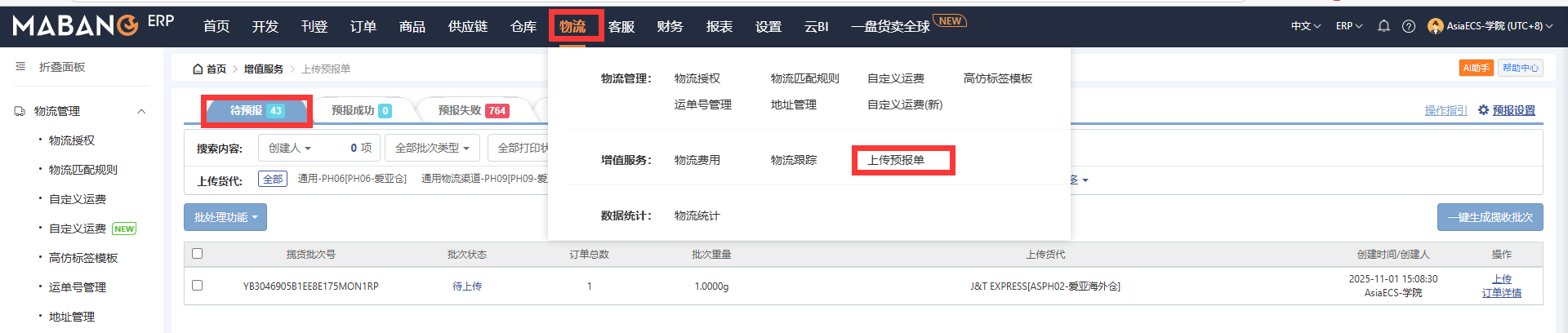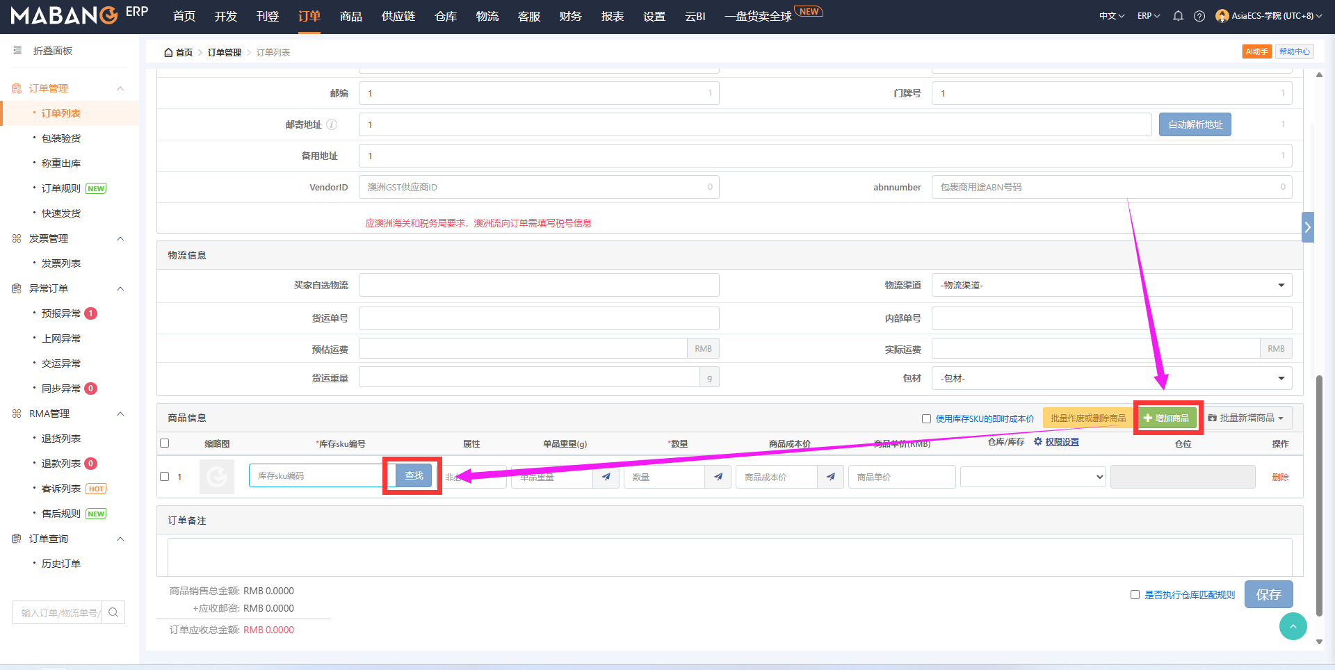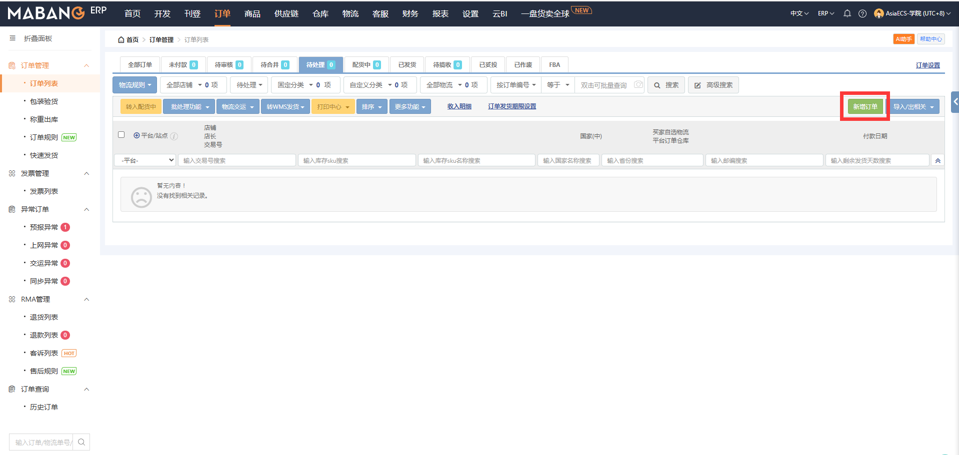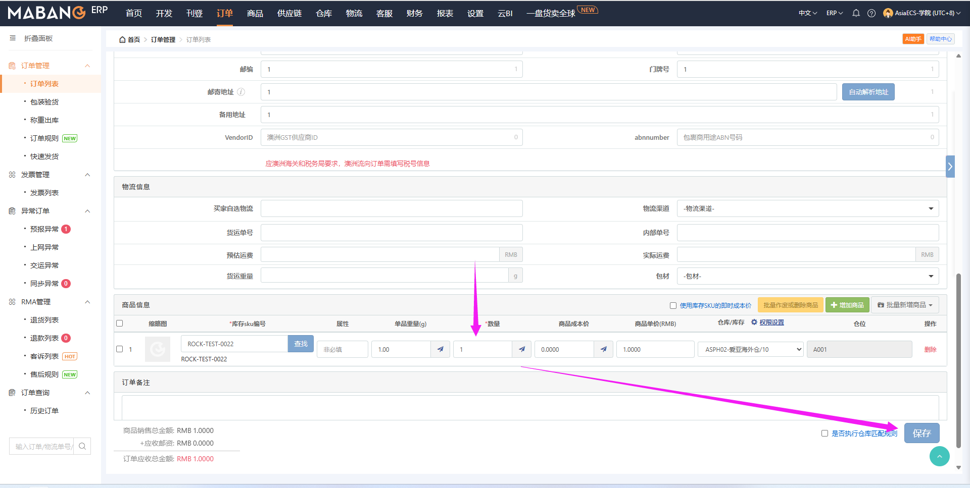 马帮EPP创建手工单下发爱亚仓WMS流程(客户自有面单)