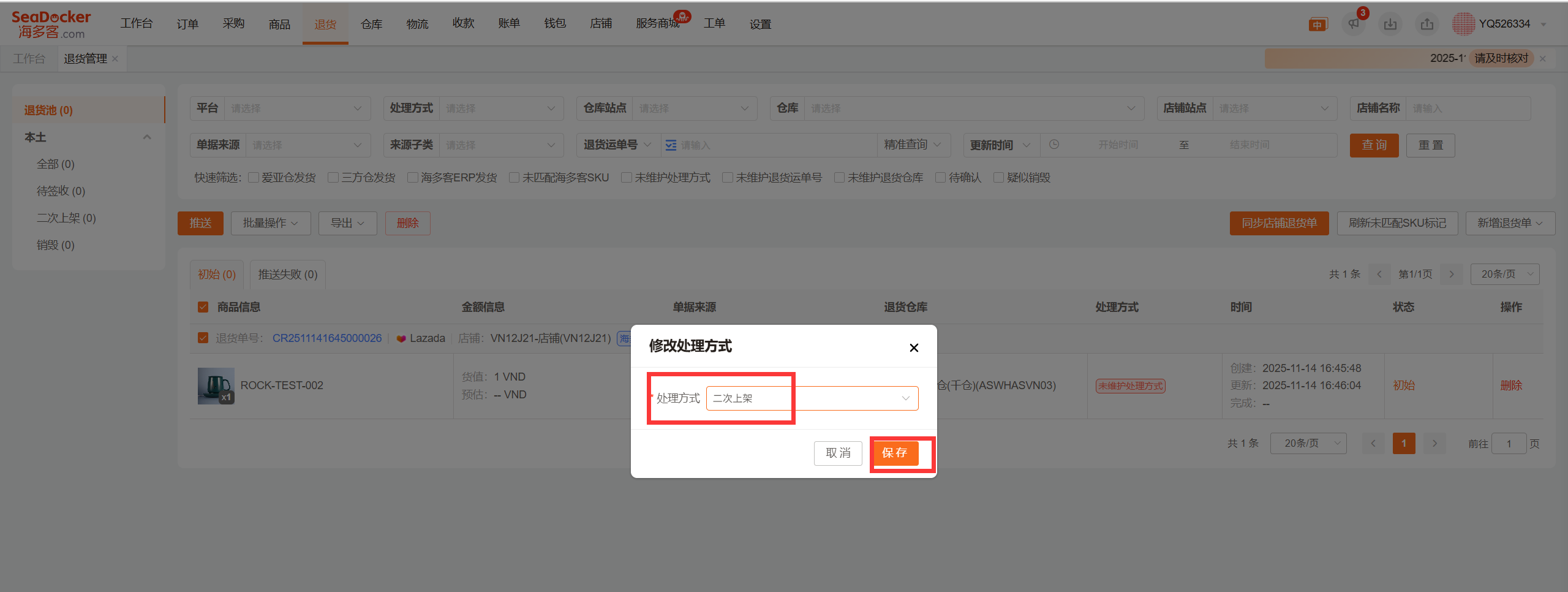 维护处理方式-选择订单-批量操作-修改处理方式-直接设置二次上架就行