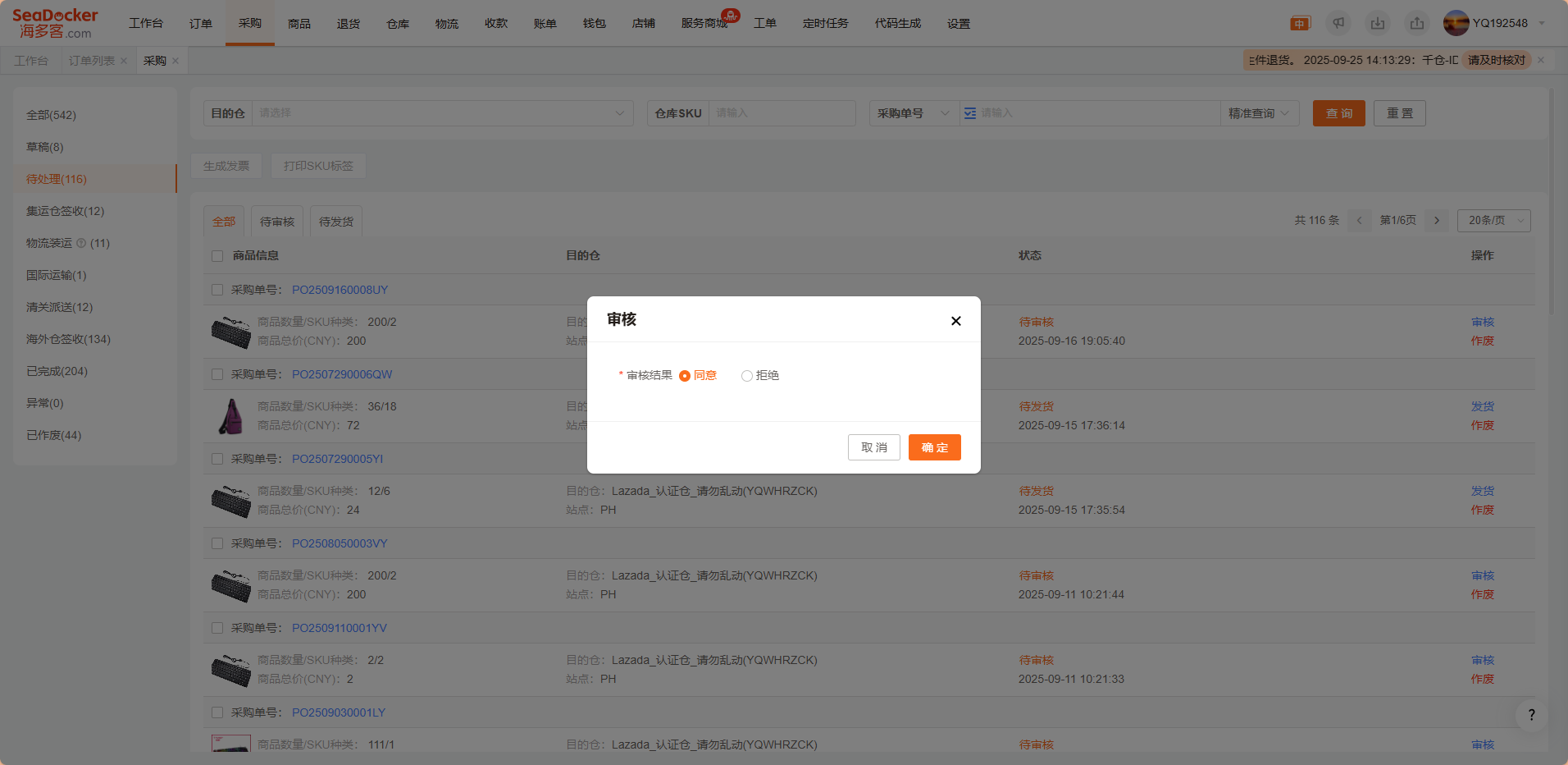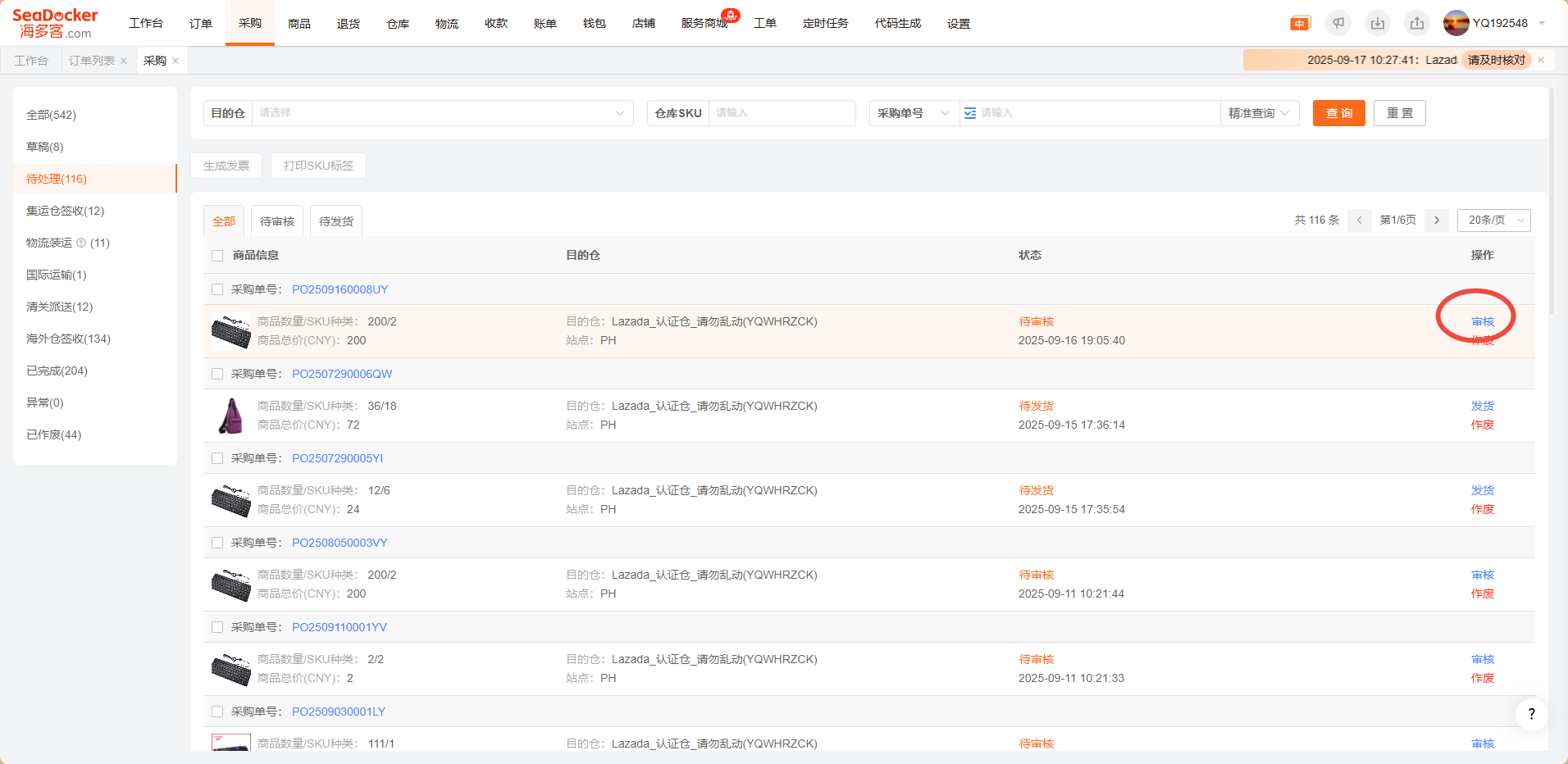 19,提交成功后可以在【海外仓签收】页面查看采购单