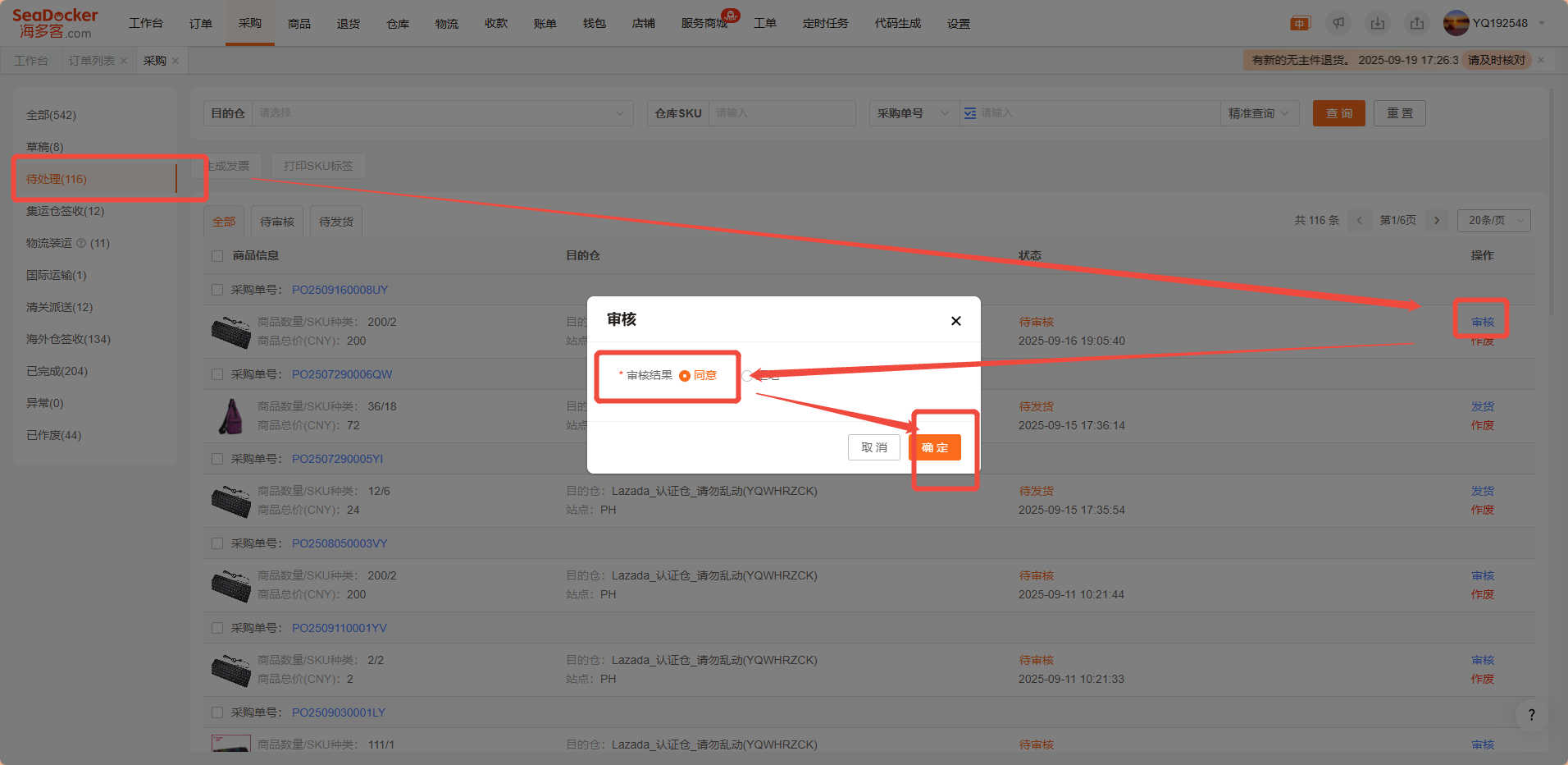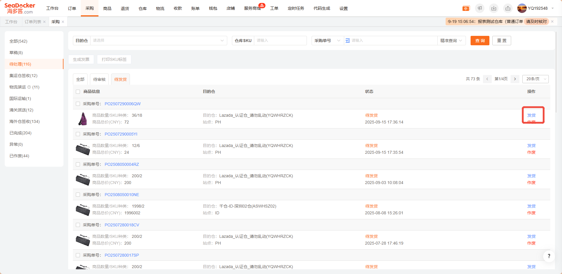 19,提交成功后可以在【集运仓签收】页面查看采购单