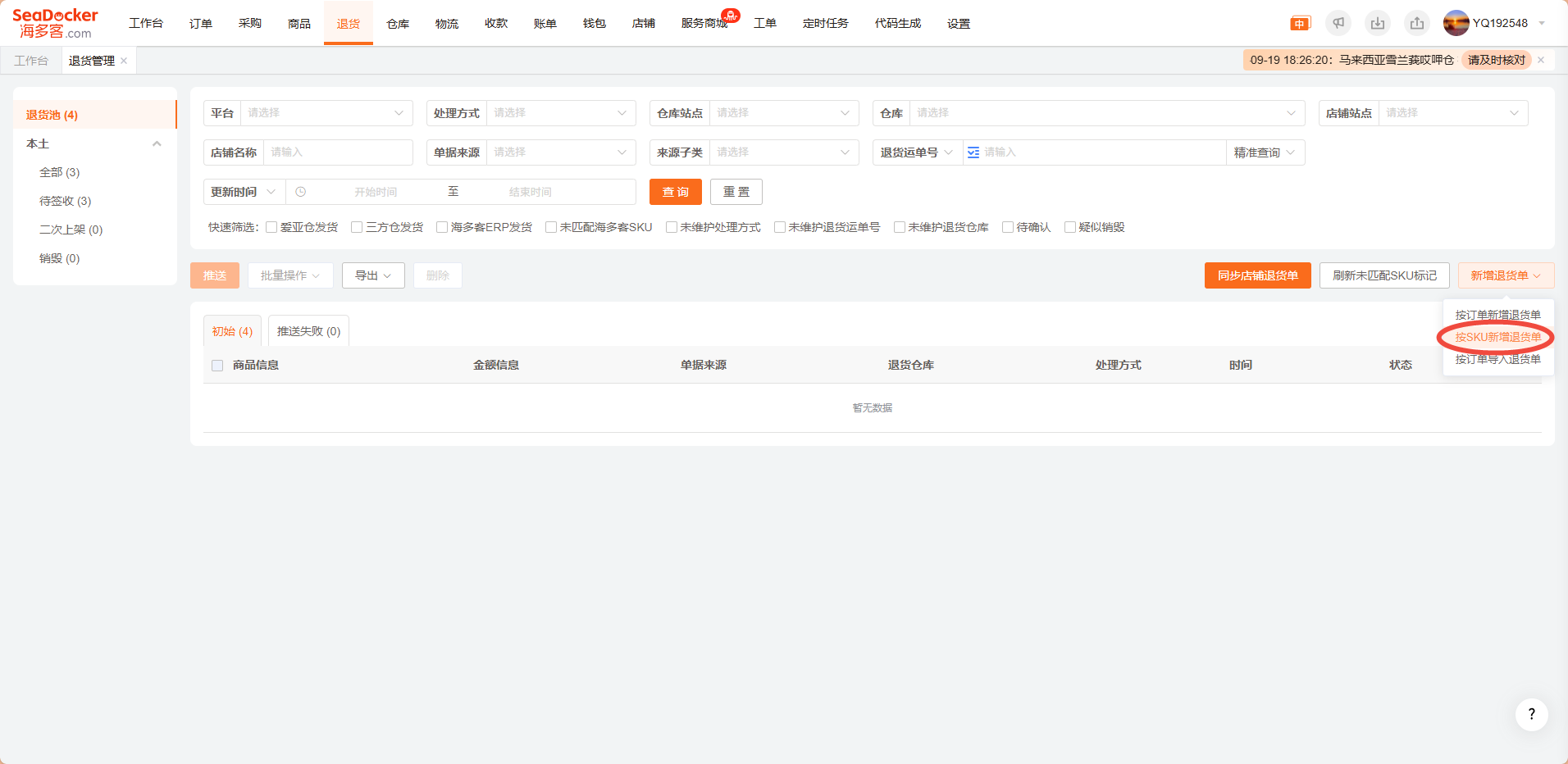 六,按店铺SKU创建退货单(此类退货单创建比较繁琐,请按照下面教程这走)