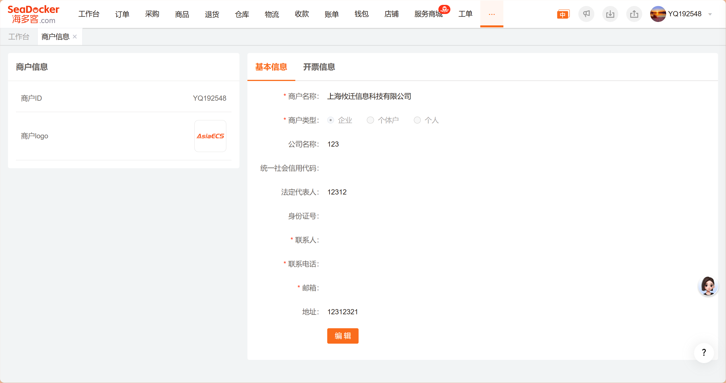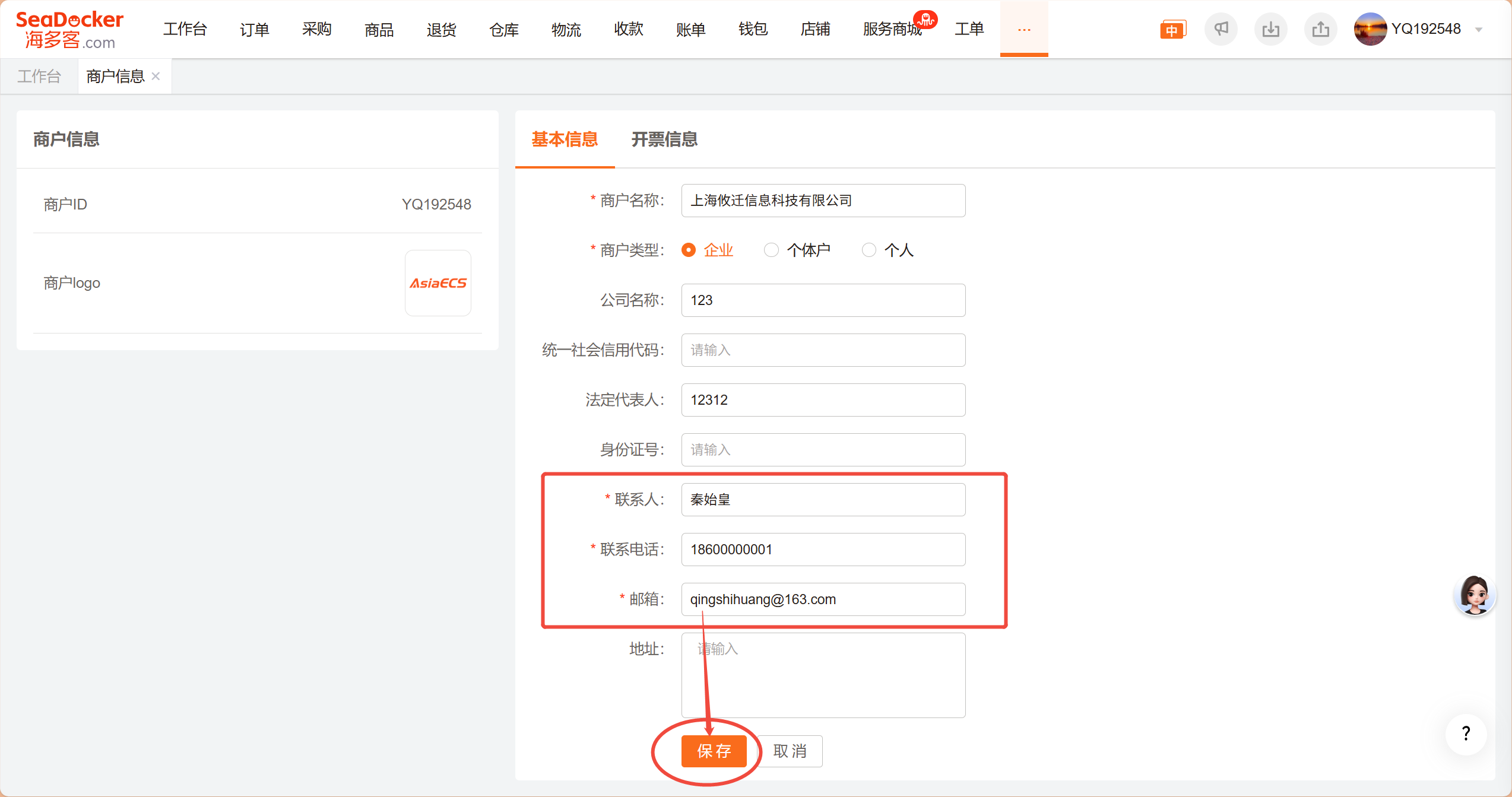 2、点击【编辑】按钮,然后填写【联系人】【联系电话】【邮箱】信息。最后点击【保存】按钮提交