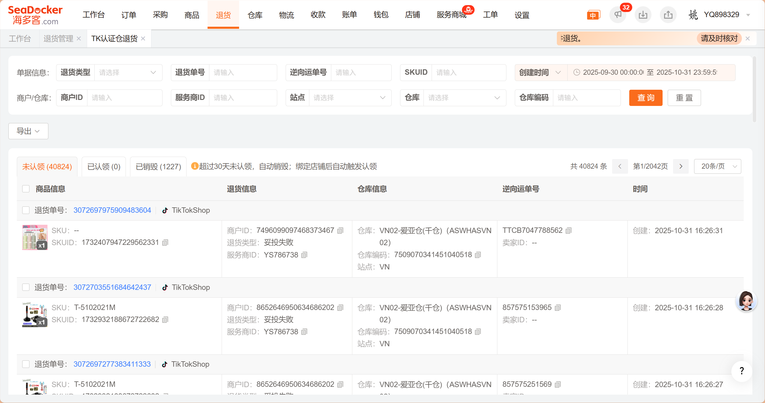 问:我如何认领我店铺【未认领】的TK认证仓退货?