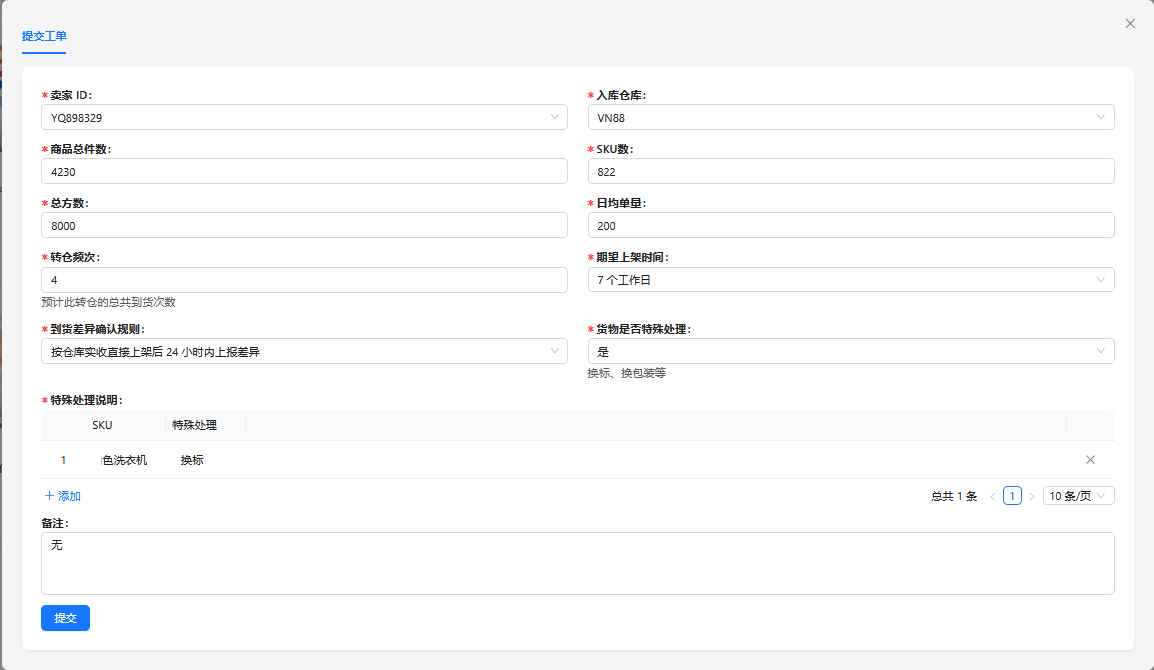 1、提交成功:在【工单-工单管理-全部tab】页面查看提交的数据和当前处理状态。