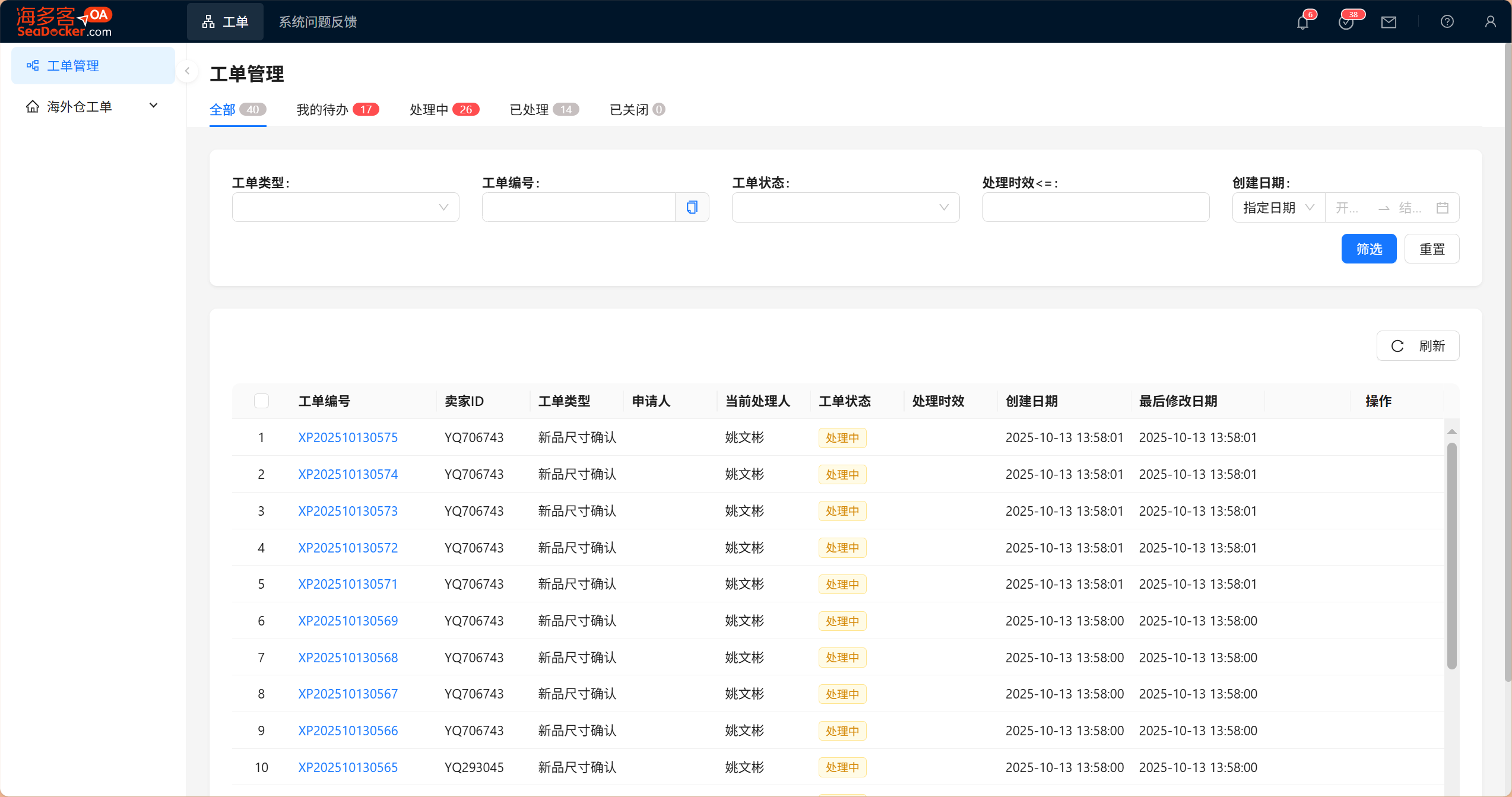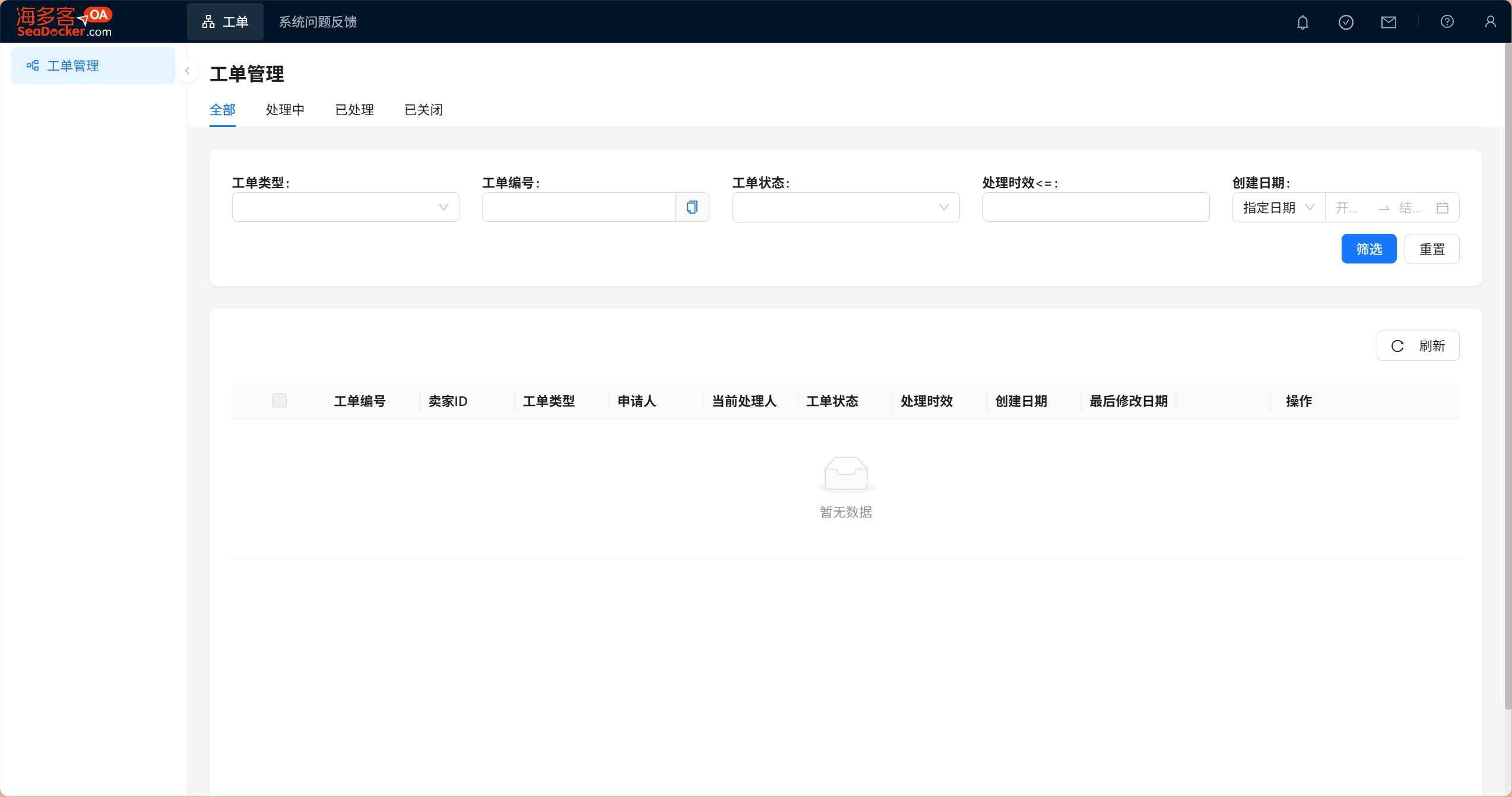 1,登录并进入【海多客工作台】,点击【工单】自动跳转
