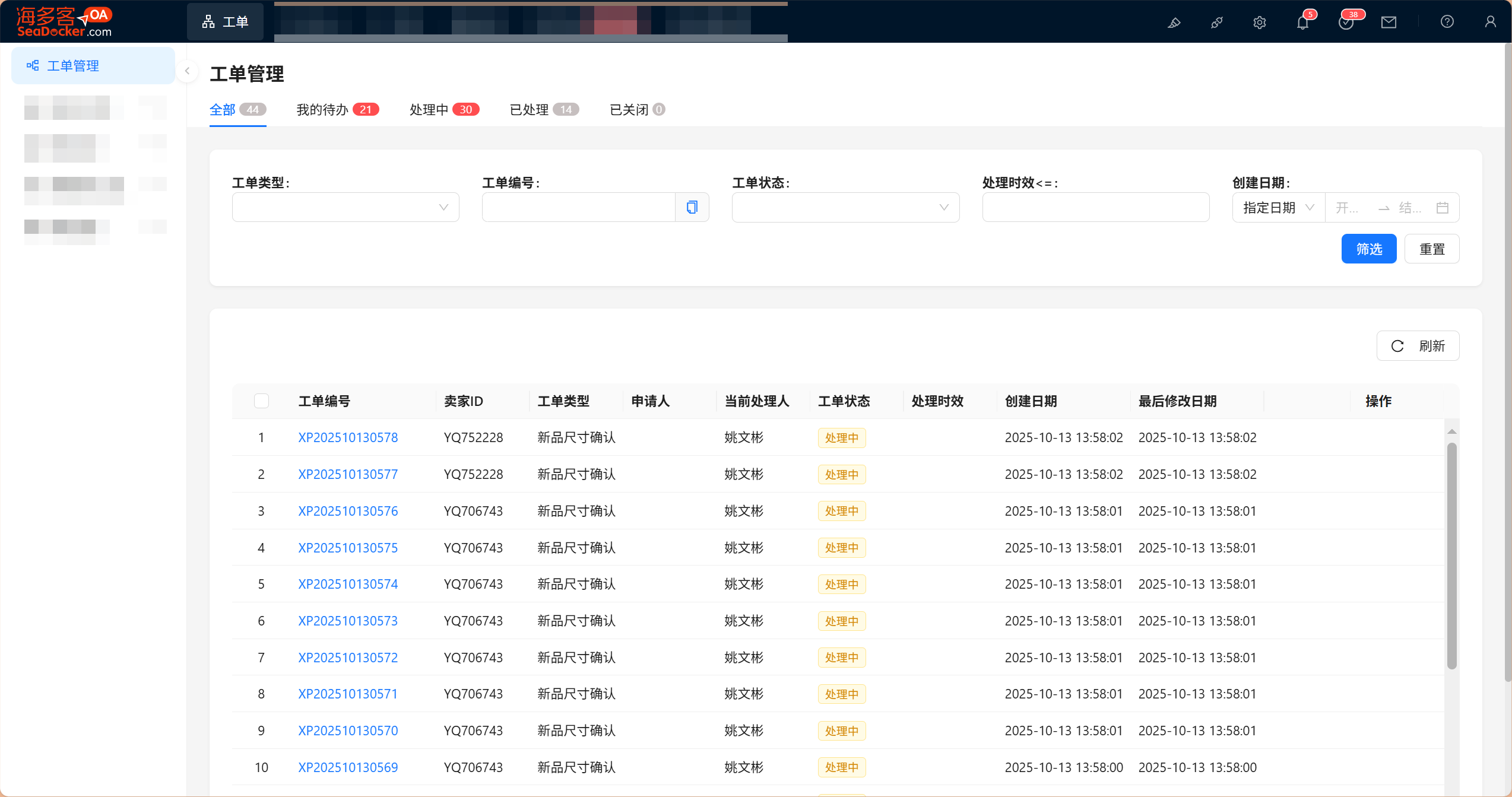 1,用户成功登录到【海多客OA】系统后,能看到当前手机号加入的所有租户数据(超管和子账号)